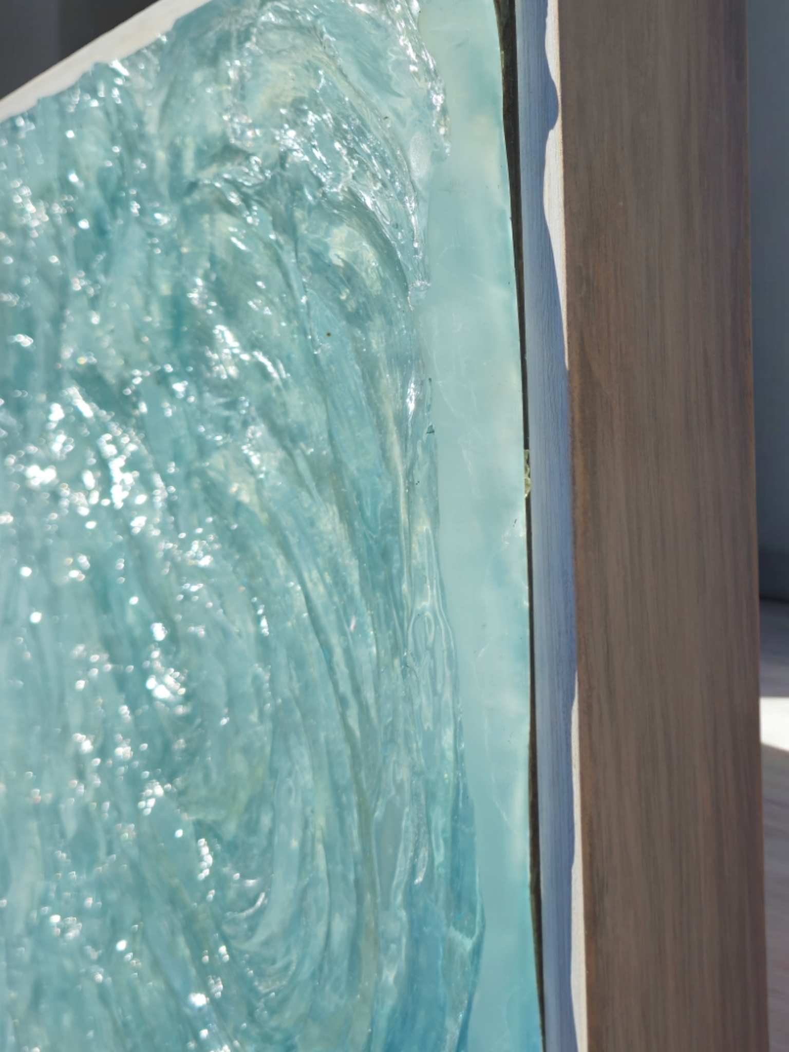 Experience the Blue Ocean in a whole new way with our one of a kind creation. Our realistic texture and flow immerses you in its depths, providing a rich and vibrant experience of the ocean in your home. Hear the swish of the water and be transported to the beach.